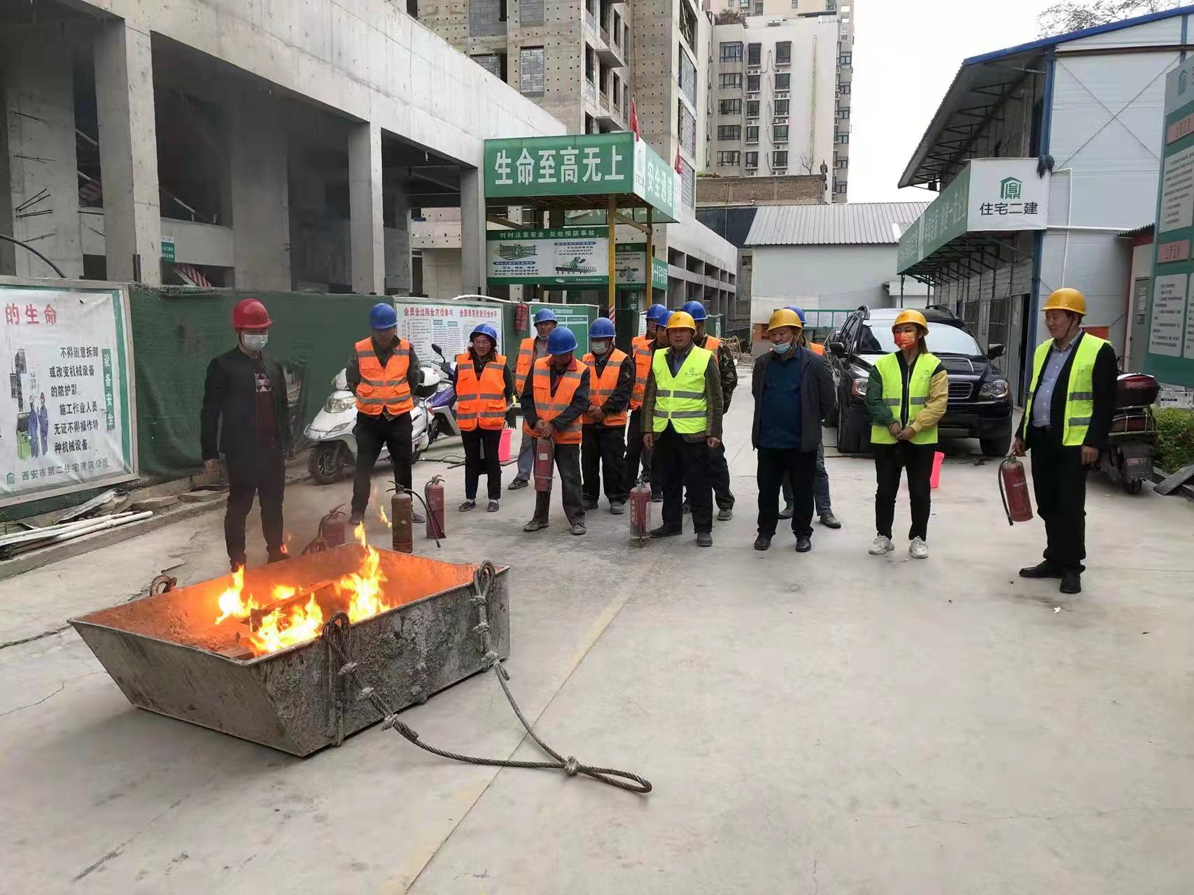 為做好春季建筑施工現(xiàn)場防火工作,堅決預(yù)防和遏制火災(zāi)事故發(fā)生,提升項目施工人員安全意識,推進安全生產(chǎn)各項措施的落實,按照住總集團2022年度安全生產(chǎn)管理工作安排,公司于4月1日在黃金嘉境項目開展消防應(yīng)急演練。