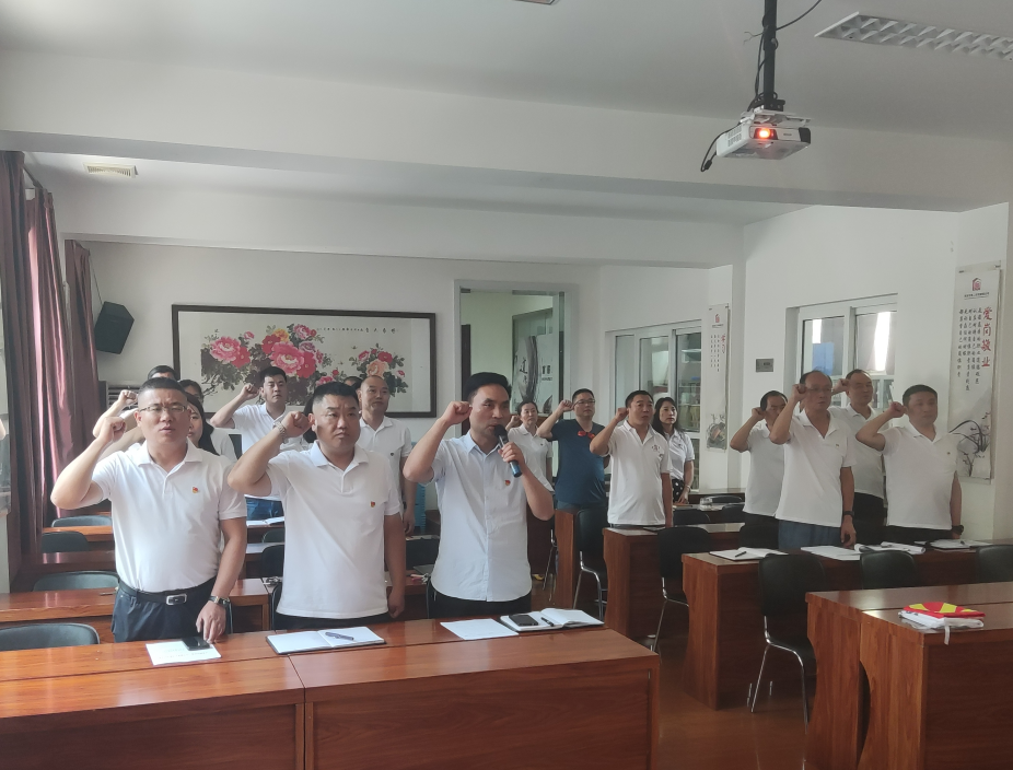 會議在雄壯的國際歌聲中開始。公司黨委書記吳高祥、副經(jīng)理杜軍、紀(jì)委書記尚進(jìn)出席會議。隨后在黨委書記吳高祥同志的帶領(lǐng)下全體黨員面對鮮紅的黨旗,重溫了入黨誓詞。