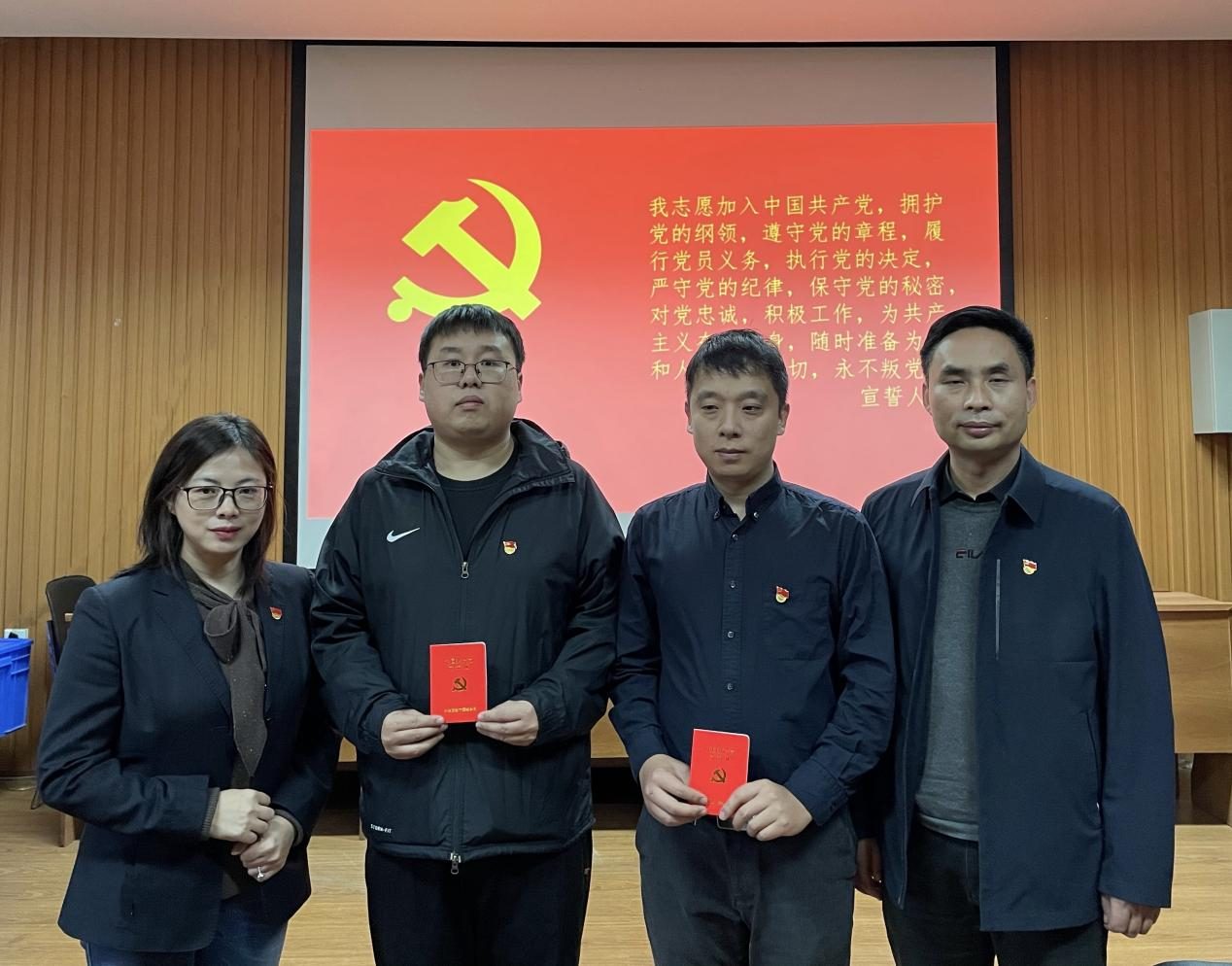 同時(shí)本次大會(huì)對(duì)趙磊、李淵博同志預(yù)備黨員轉(zhuǎn)正進(jìn)行了表決,隨后對(duì)接收白冰、尹中同志為預(yù)備黨員進(jìn)行表決,并舉行入黨宣誓儀式。本次宣誓儀式,全體黨員共同參與,重溫入黨誓詞,進(jìn)一步堅(jiān)定信念,永葆初心。